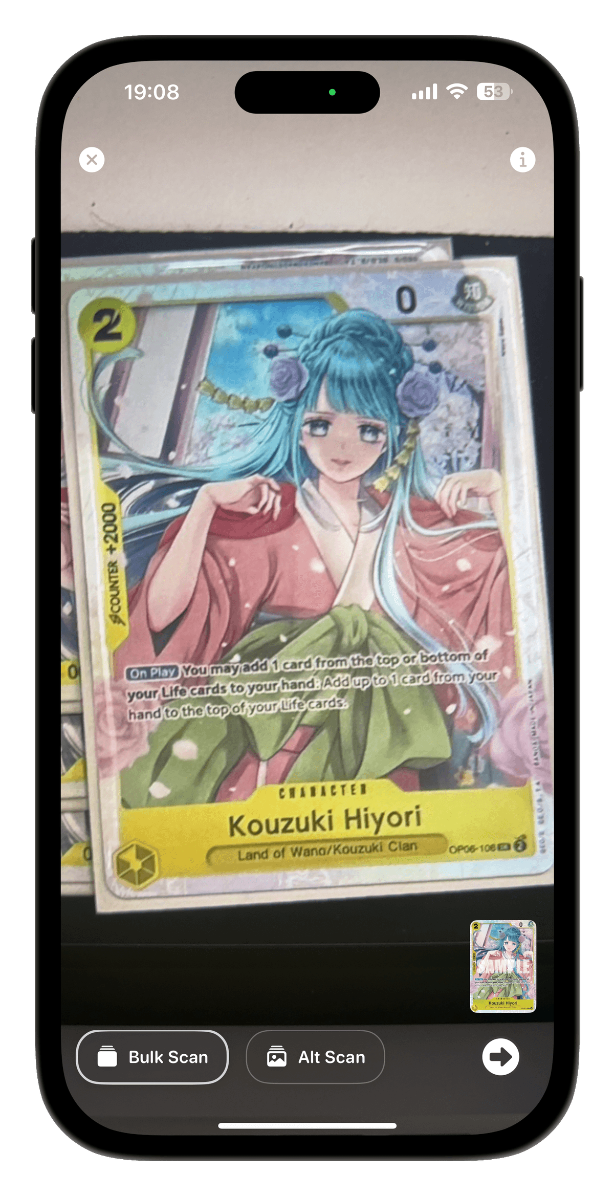 Got pro to test the scanning, works pretty good! Going to use to scan all my bulk, been looking for something like ManaBox but for one piece, and this has the potential. Keep it up!